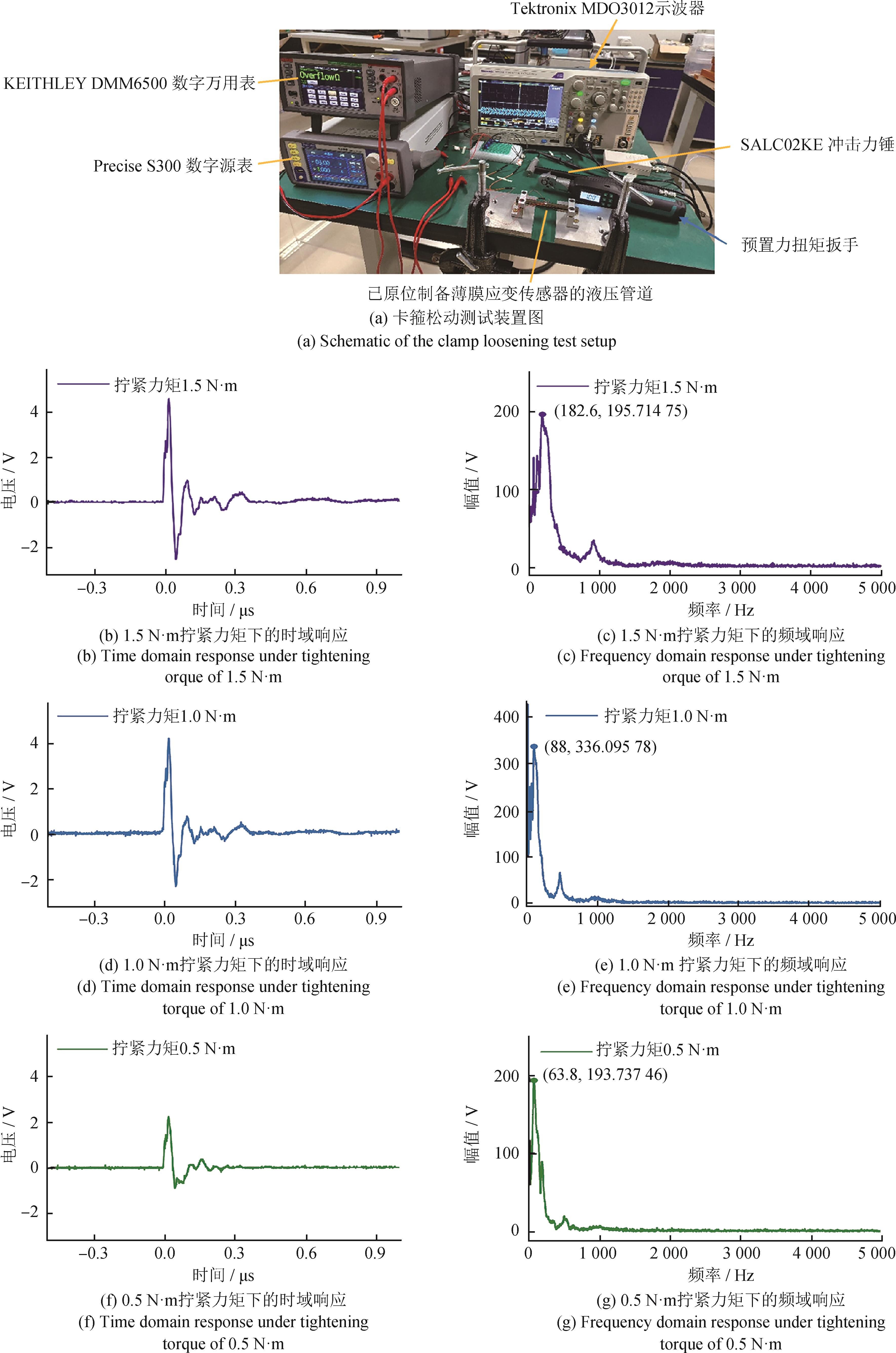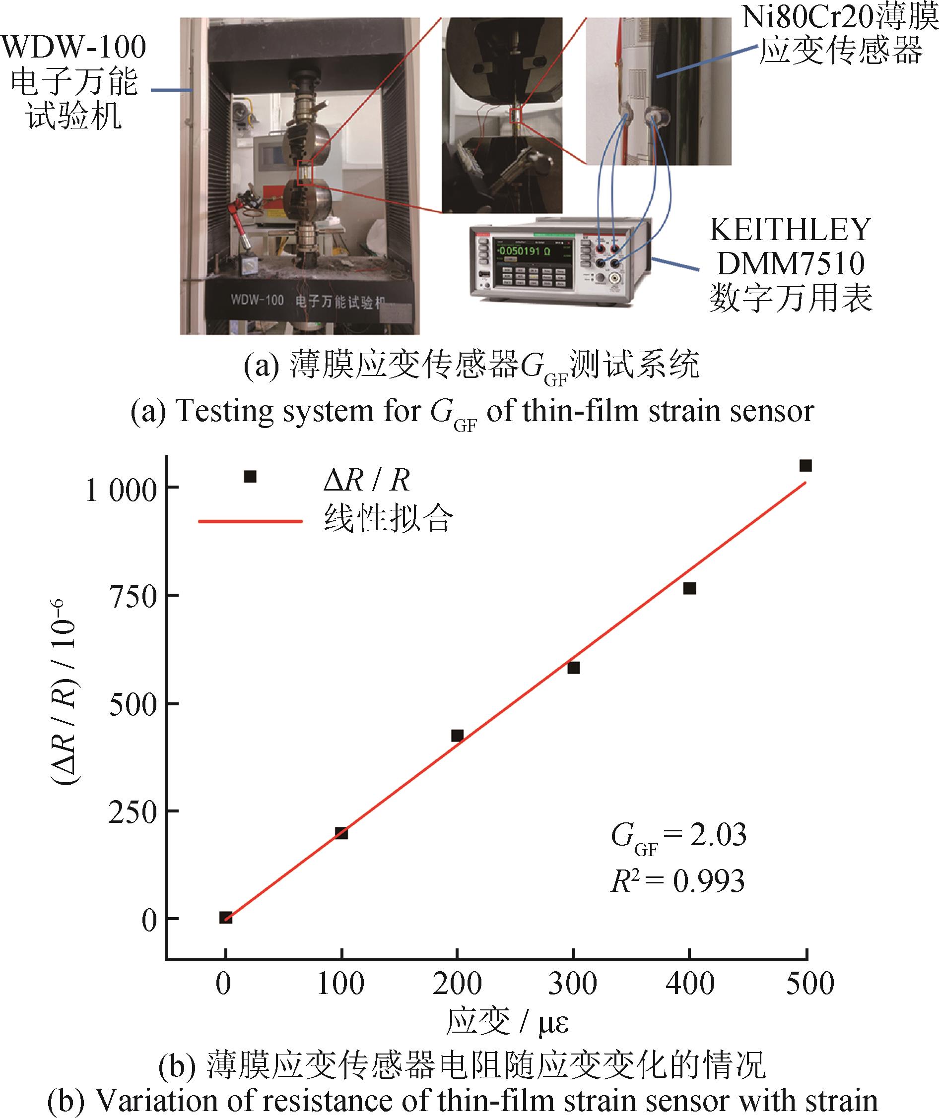 Abstract:Traditional strain gauges face challenges such as significant strain transfer errors and slow response during monitoring, severely limiting the engineering effectiveness. To addresses the monitoring requirements for strain, vibration, and clamp looseness in aviation hydraulic pipelines, this paper proposed a design and manufacturing method for in?situ preparation of thin?film strain sensors on hydraulic pipelines. A finite element analysis model for strain transfer errors was established, and the structural parameters of the resistive strain grating were optimized. Multi?layer hetero?thin films, including the Ni80Cr20 strain?sensitive layer, were prepared using magnetron sputtering technology. Through a five?axis laser etching process, the laser incidence angle and focal position were adjusted in real?time, achieving a high?precision control over the etching depth. Testing revealed that the prepared thin?film strain sensor exhibited a drift rate (DR) of 8.4 × 10-5 h-1, a temperature coefficient of resistance (TCR) of 1.3 × 10-4 ℃-1 in the range of -40 ~ 100 ℃, a gauge factor (GF) of 2.03 in the strain range of 0 ~ 500 με, and a response time of just 15 ns. Force hammer experiments confirmed the sensor's ability to detect and identify key information such as strain, vibration, and clamp tightness. This integrated manufacturing sensor holds promising applications in the field of aviation hydraulic pipeline condition monitoring.