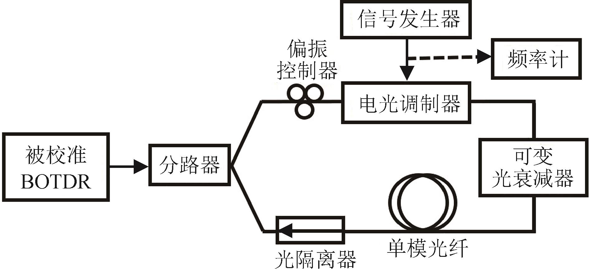 Abstract:A Brillouin frequency shift parameter calibration method based on optical carrier suppression modulation technology is proposed to meet the metrological calibration requirements for frequency shift of Brillouin optical time domain reflectometer (BOTDR) in distributed fiber sensors. Fiber Brillouin scattering signals were simulated using the frequency doubling signal generated by optical carrier suppression modulation technology, and a mathematical model and value traceability diagram between the Brillouin frequency shift reference value and the output signal frequency of the signal generator were provided, to achieve the value traceability of Brillouin frequency shift to the atomic time standard reference device. By adjusting the frequency of the output signal of the signal generator, the Brillouin frequency shift indication error at different frequency points within the frequency shift range can be obtained. Experiments were conducted to obtain calibration results for different frequency shift points within the range of 10.6 to 11.8 GHz, and an uncertainty analysis was performed. When the measured Brillouin frequency shift value is 10 998.38 MHz, the expanded uncertainty is 0.07 MHz (k = 2). This calibration method can meet the metrological traceability requirements for BOTDR frequency shift in the field of fiber optic sensing applications, providing strong support for promoting the performance improvement and widespread application of BOTDR.