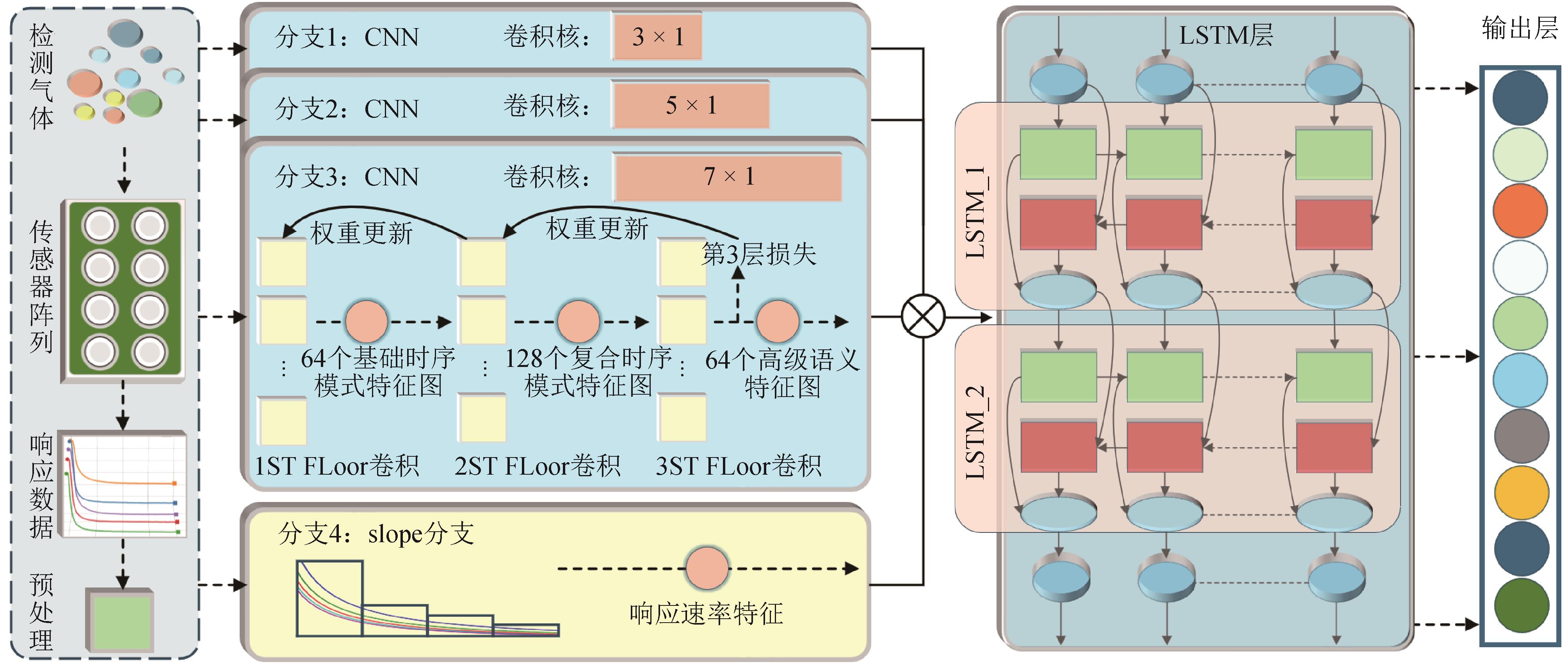 Abstract:To address the need for multi?component gas detection in complex environments, this paper presents the design and implementation of a portable multi?channel gas detection system based on metal?oxide semiconductor (MOS) sensors. The system integrates an eight?channel sensor array, a high?precision signal?acquisition circuit, and a low?power hardware. A multi?branch convolutional neural network combined with a bidirectional long short?term memory network is employed to achieve automatic feature extraction and temporal modeling of multi?channel signals. Experiments using CO, C2H5OH, and their interfering gases and mixtures as the research subjects demonstrate that the system exhibits linear responses and high detection accuracy across different ranges of concentration. Comparative tests validate that the sensor?fusion strategy improves classification accuracy, enhances robustness, and increases adaptability to complex environments, with the classification accuracy for mixed gases reaching up to 100%. This study provides a reliable technical basis and practical reference for multi?component gas detection in environmental monitoring, industrial safety, and public health applications.